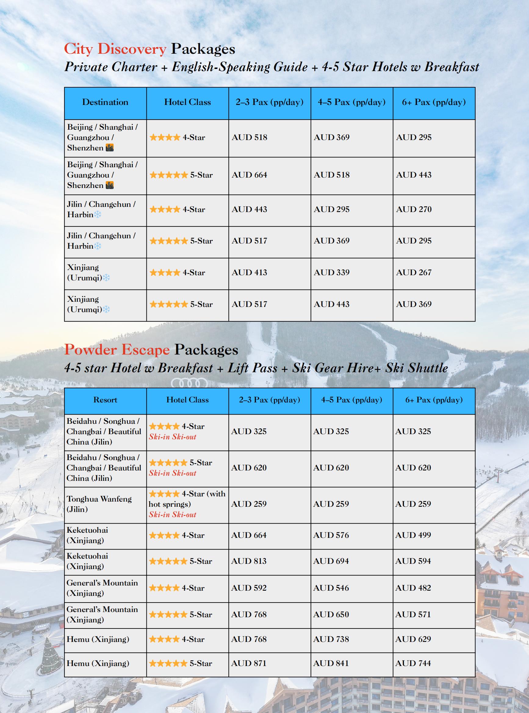 Customise your own China's Ski Trip
